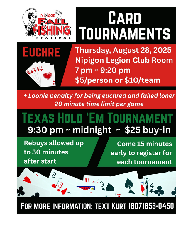 Get ready for an exciting start to the 60th Annual Nipigon Fall Fishing Festival with Thursday Night Card Tournaments.