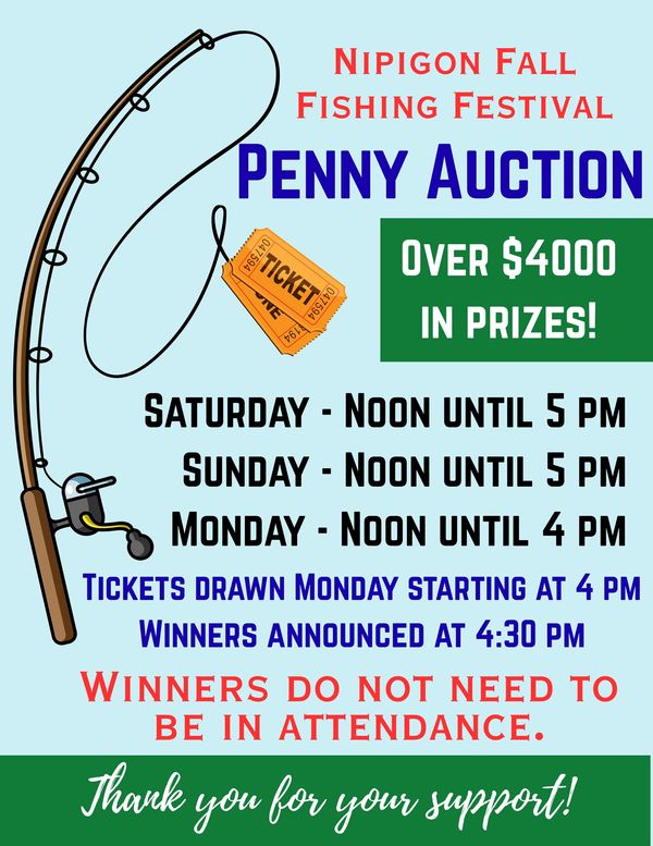 A perennial favourite at the Nipigon Fall Fishing Festival, the Giant Penny Auction offers an exciting opportunity for everyone to win fantastic prizes while supporting our community!