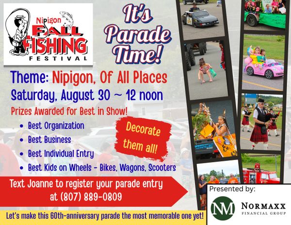 Kicking off the main weekend festivities with a bang, the Nipigon Fall Fishing Festival Annual Parade takes to the streets on Saturday at noon! This vibrant and much-anticipated procession begins downtown and winds its way through the heart of Nipigon, culminating at the Community Centre.