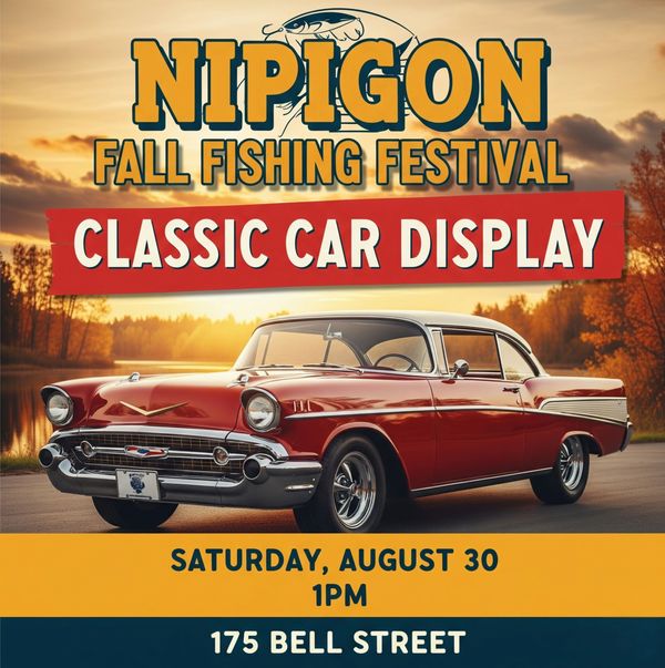 Get ready to cruise down memory lane at the Nipigon Fall Fishing Festival Classic Car Display! Join us on Saturday, August 30 at 1pm at 175 Bell Street to admire a stunning collection of classic cars. It's a fantastic opportunity to see some of the most beautiful and iconic vehicles of the past. Don't miss out on this showcase of automotive history and timeless design!